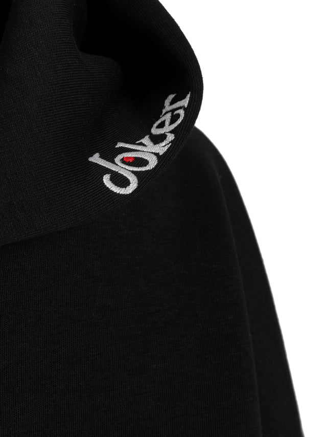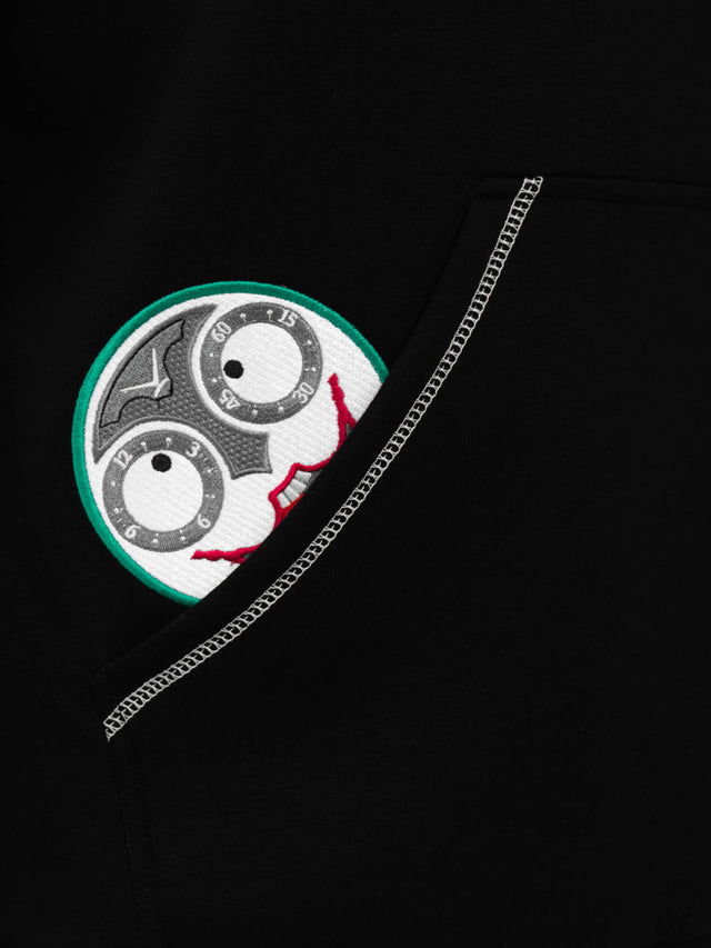 Уникальный характер модели раскрывается через тщательно проработанные детали, отсылающие к шедеврам часового искусства. Просторный карман-кенгуру выделен акцентной контрастной строчкой, а внутри него скрыт главный дизайнерский секрет — детальная вышивка знаменитого улыбающегося циферблата, которая гармонично дополняется стилизованной надписью «Джокер» на капюшоне.