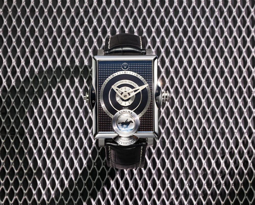 Часы «Кино» не только позволяют следить за ходом времени – они напоминают о том, как начиналась история мирового кинематографа. Корпус и циферблат модели стилизованы под винтажную фотокамеру. Но главная магия происходит в окошке миниатюрного «кинопроектора», интегрированного в нижнюю часть циферблата. После запуска кнопки в нем оживает анимация: серия исторических снимков «Салли Гарднер в галопе».